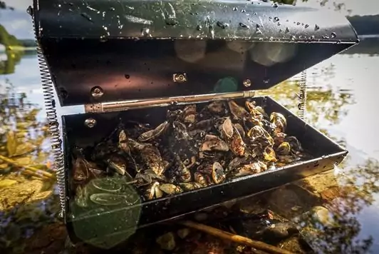 Einfach und schnell am Multispotstick montiert, lässt man den Adapter zum Gewässergund, drückt auf die gewünschte Stelle und dreht eine viertel Umdrehung im Uhrzeigersinn. Schon schnappt der Bodenprobennehmer dank kräftiger Zugfedern zu und man kann die Bodenprobe ohne Verlust an Bodenstoffen nach oben holen.