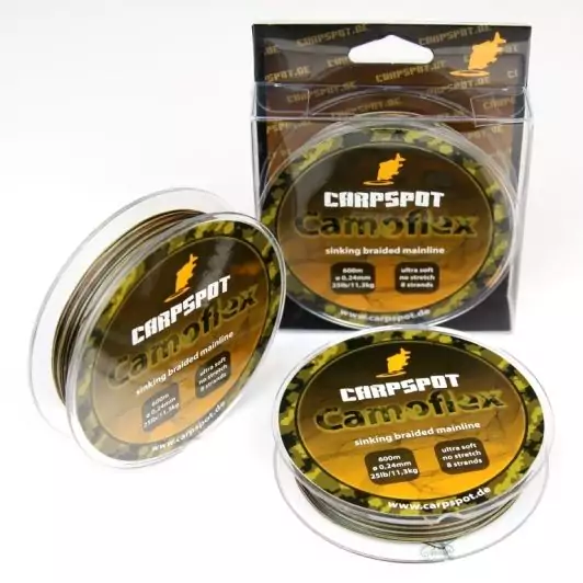 Die Camoflex ist extrem eng und rundgeflochten. Durch diesen Herstellungsprozess entsteht eine sehr glatte Oberfläche und dennoch bleibt die strapazierfähige Schnur geschmeidig. Diese Eigenschaften unterstützen gerade dann, wenn man weite Würfe erzielen möchte.