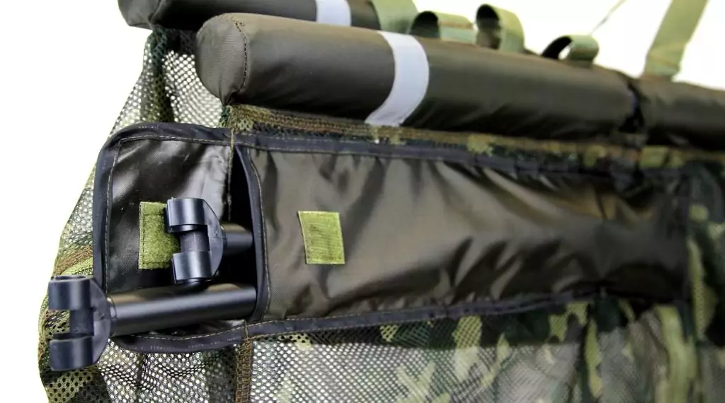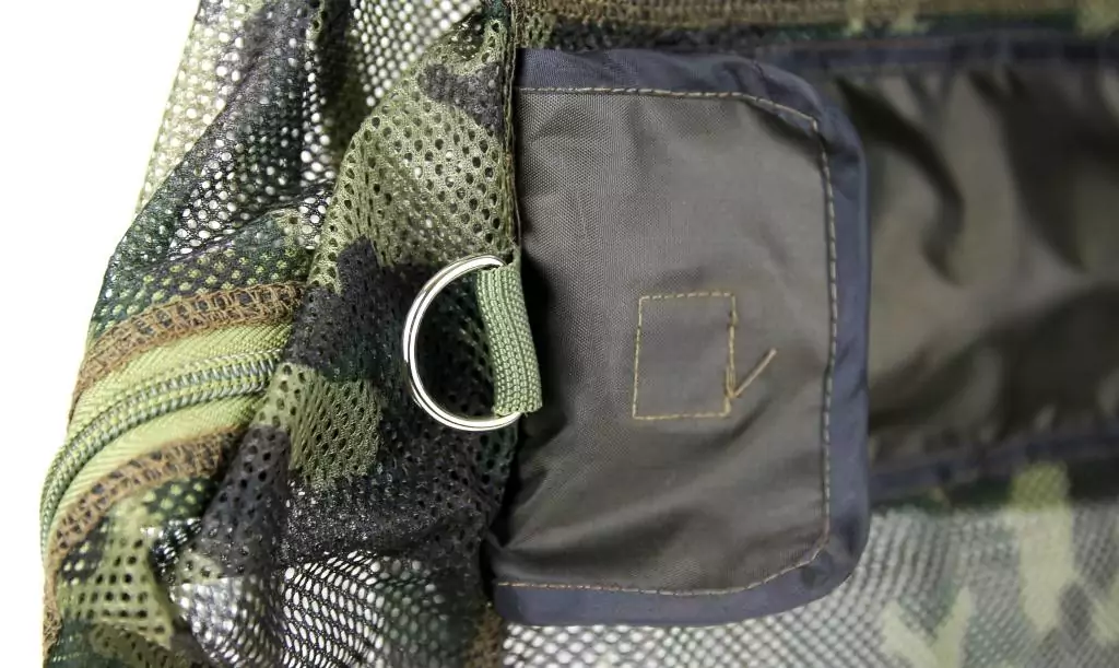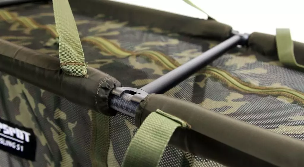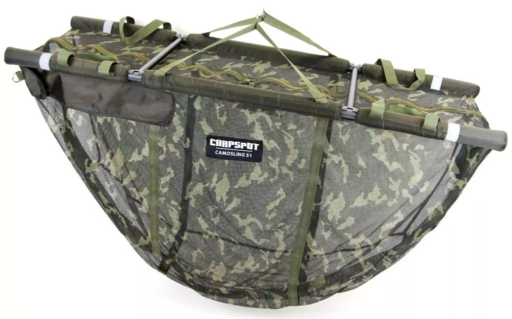 Die Carpspot CamoSling S1 ist die ideale Sling zum sicheren Hältern, Wiegen, Fotografieren und Zurücksetzen Ihres Fangs. Diese Wiegeschlinge ist enorm stabil, extrem leicht und bietet dank integrierter reflektierender Schwimmkörper, großem Netz und durchgehendem Reißverschluss die Möglichkeit den Fisch vorübergehend, schonend zu hältern, um beispielsweise die Abhakmatte oder Fotoausrüstung vorzubereiten. Ihre Leichtigkeit erhält sie durch die 2 eingearbeiteten Carbonstangen, die bei sämtlichen Konkurenzprodukten stets aus Alu oder sogar Stahl sind. 6 Tragegriffe, zwei Edelstahlösen (eine an jedem Ende der Sling) sowie ein Karabiner, der ein ungewolltes Öffnen der sehr hochwertigen und leichtgängigen Reißverschlüsse verhindert, runden die Ausstattung ab.