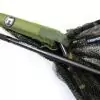 Das camouflage Netz ist äußerst robust, besitzt doppelte Nähte, besteht aus einem fischschonenden, grobmaschigen Nylon-Material und hat extra verstärkte Ecken. Weiterhin ist eine große Schlaufe eingenäht, durch die das Netz gefädelt wird und dann in dem gefederten Edelstahlclip hinter dem mitgelieferten Netfloat eingeklipst wird. Dies ermöglicht es, das leichte Landingnet C2 mühelos im und außerhalb des Wasser zu manövrieren. Beim Herausheben aus dem Wasser gibt der Clip das Netz wieder frei.