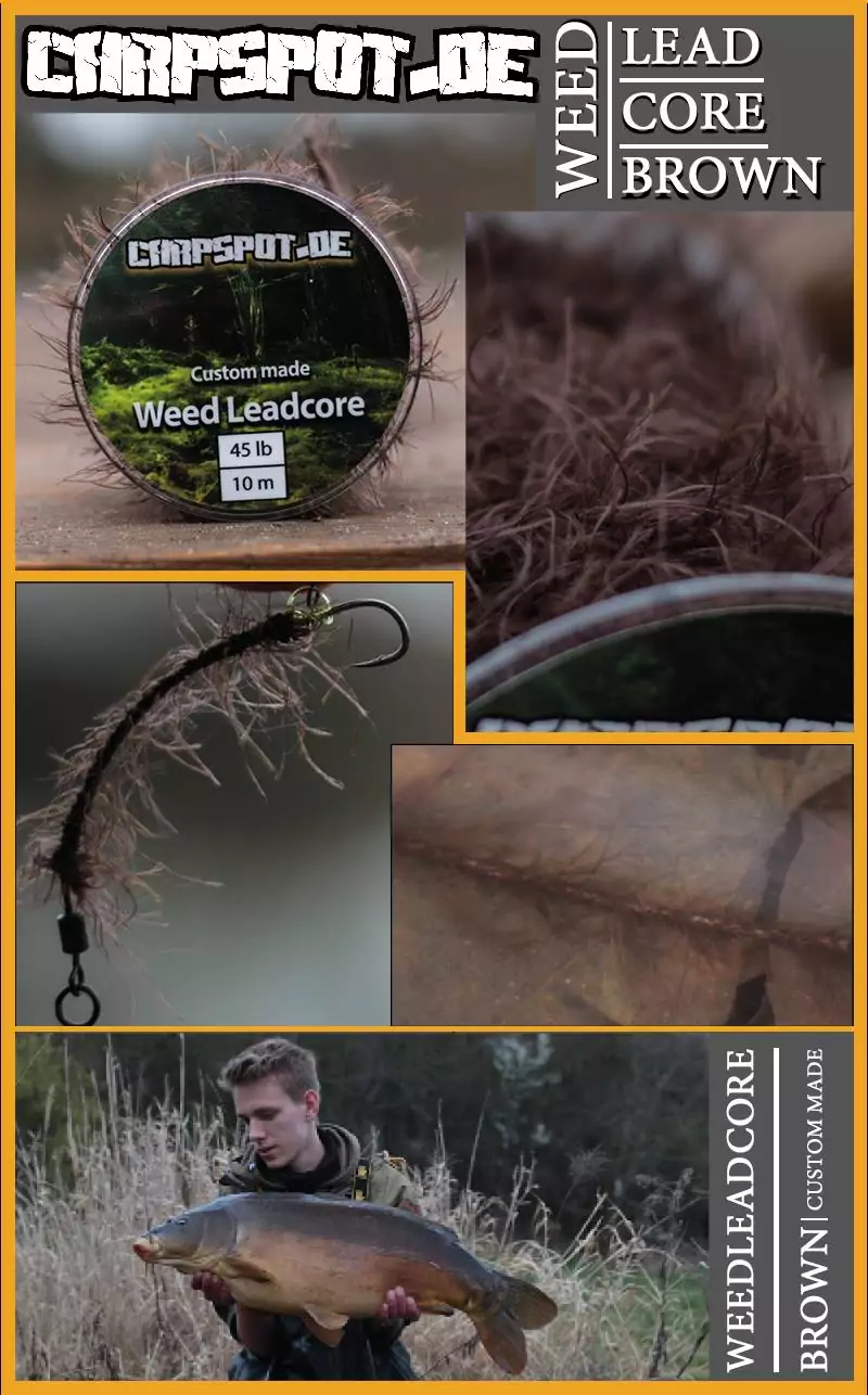 Im Inneren des Krautmantels befindet sich ein 45lb starkes dunkelgrünes Leadcore, welches sich ganz einfach Spleißen lässt. Den Krautmantel auf dem LEadcore kann man einfach verschieben um es freizulegen. Auf der Spule sind ganze 10m!