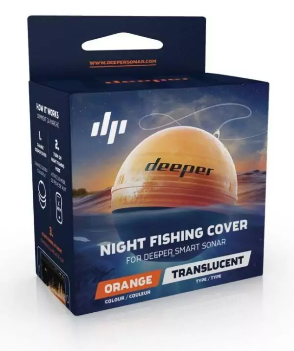 Abdeckungen zum Nachtangeln Angeln in der Nacht? Ihrem Deeper eine Lichtfunktion hinzufügen. Tauschen Sie einfach die originelle Abdeckung durch eine transparente und wählen Sie den Nachtangeln-Modus auf die mobile Anwendung.