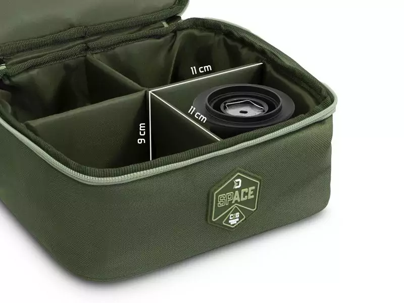 Das Delphin SPOOL ist eine praktische Tasche zur Aufbewahrung von Ersatzspulen. Der Innenraum der Tasche ist in vier gleich große Fächer unterteilt, die viel Platz für die Rollen mit großer Kapazität bieten. Spulen von Daiwa und Shimano in der Größe 14.000 sin dabsolut kein Problem! Dank dieser kompakten Tasche haben Sie Ihre Ersatzrollen immer perfekt organisiert und einsatzbereit, wenn Sie sie brauchen. Die gepolsterten Wände und Trennwände sorgen dafür, dass die Spulen im Inneren jederzeit vor Berührung und unerwünschten mechanischen Beschädigungen geschützt sind.