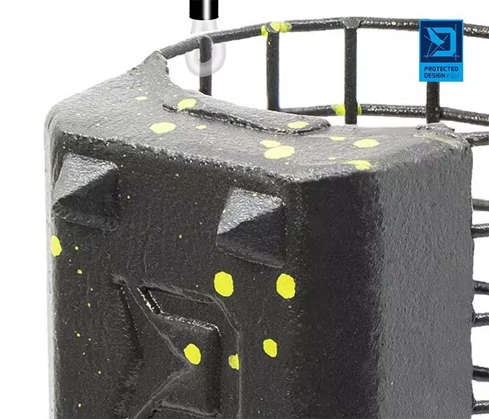 Der RiverStix Futterkorb ist in Schwarz mit den grünen Flecken ausgeführt. Diese Farbkombination tarnt den Futterkorb auf dem Grund eines fließenden Flusses und fügt sich außerdem perfekt in die REAXE-Feederserie ein.