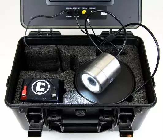 Unsere neueste Version der Spotcam "Spotcontroll 2.0" bietet dank ihrem schweren Edelstahlgehäuse mit 1,4kg Gewicht eine ruhige und perfekte Senkrechtsicht, auch bei Strömung oder Drift.